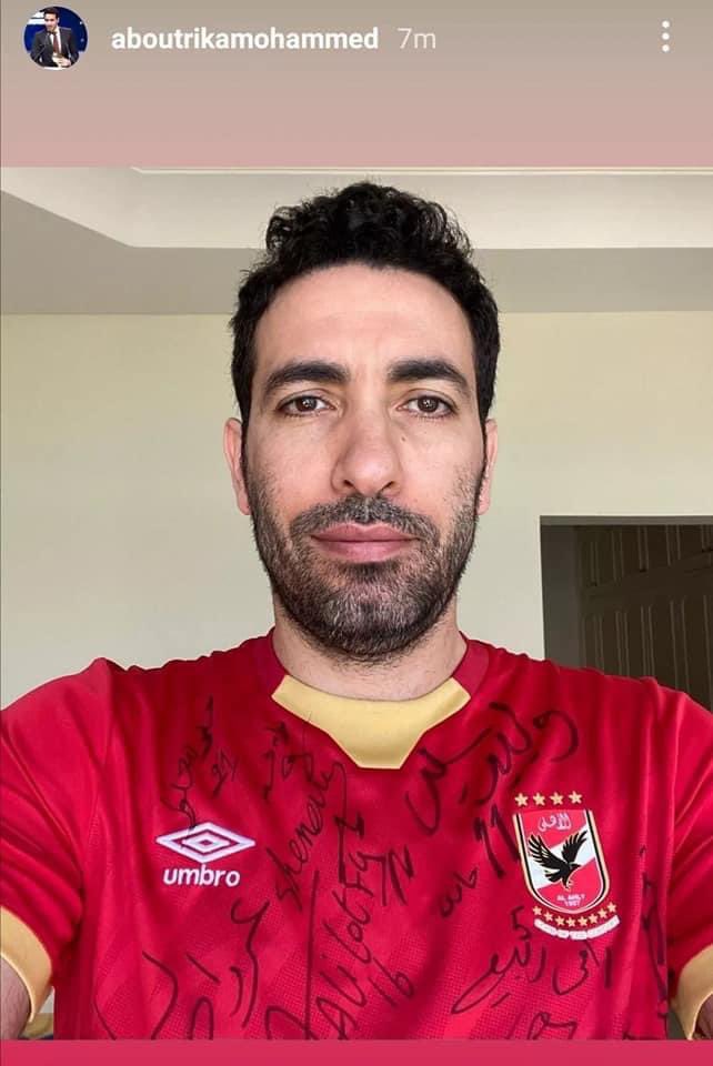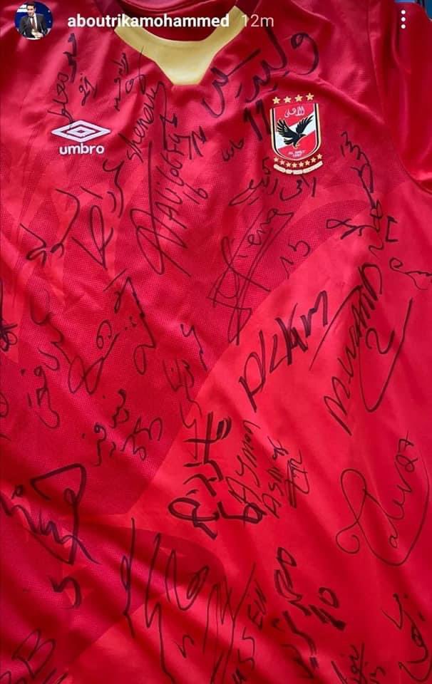 ونشر أبو تريكه عبر حسابه الشخصي على موقع التواصل الاجتماعي «آنستجرام» صورًا وهو يرتدي قميص الأهلي الموقع من اللاعبين، معلقًا عليها:" شكرًا على أغلى هدية من رجالة الأهلي".